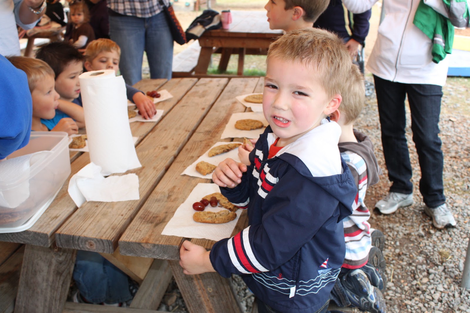 There was a big mound of hay for them to climb on and play in. There are 10 boys out of 12 kids in his class! Crazy, huh! Here he is with some of his buddies. I thought their poses were hilarious!