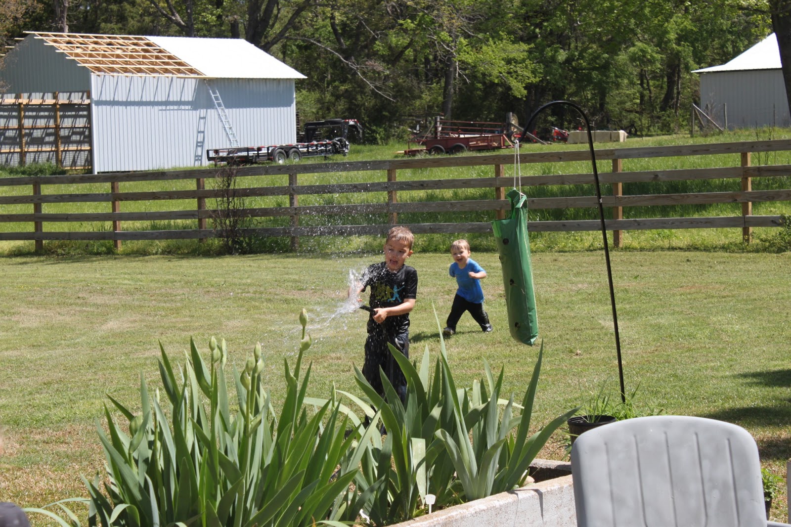 Then, they decided they'd wash themselves off and got into the water hose.