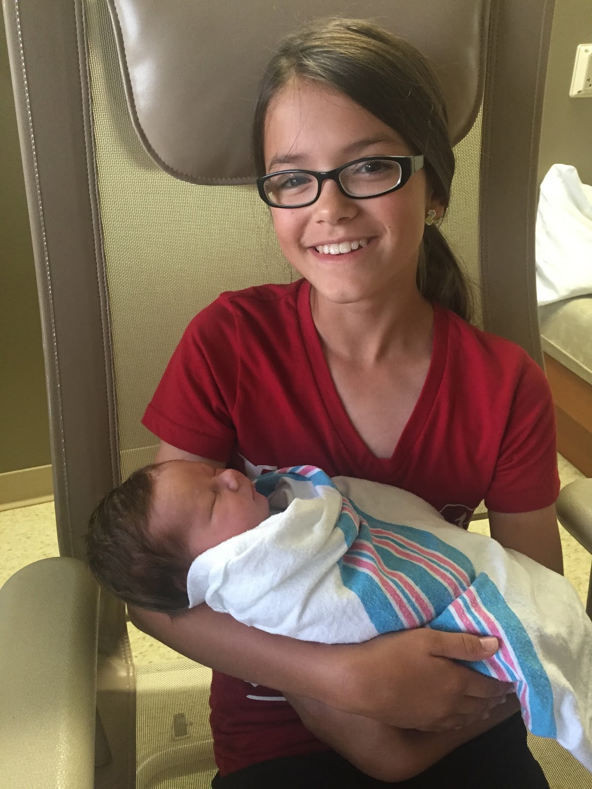 This girl is going to be the best big sister. She wants to hold him constantly.
