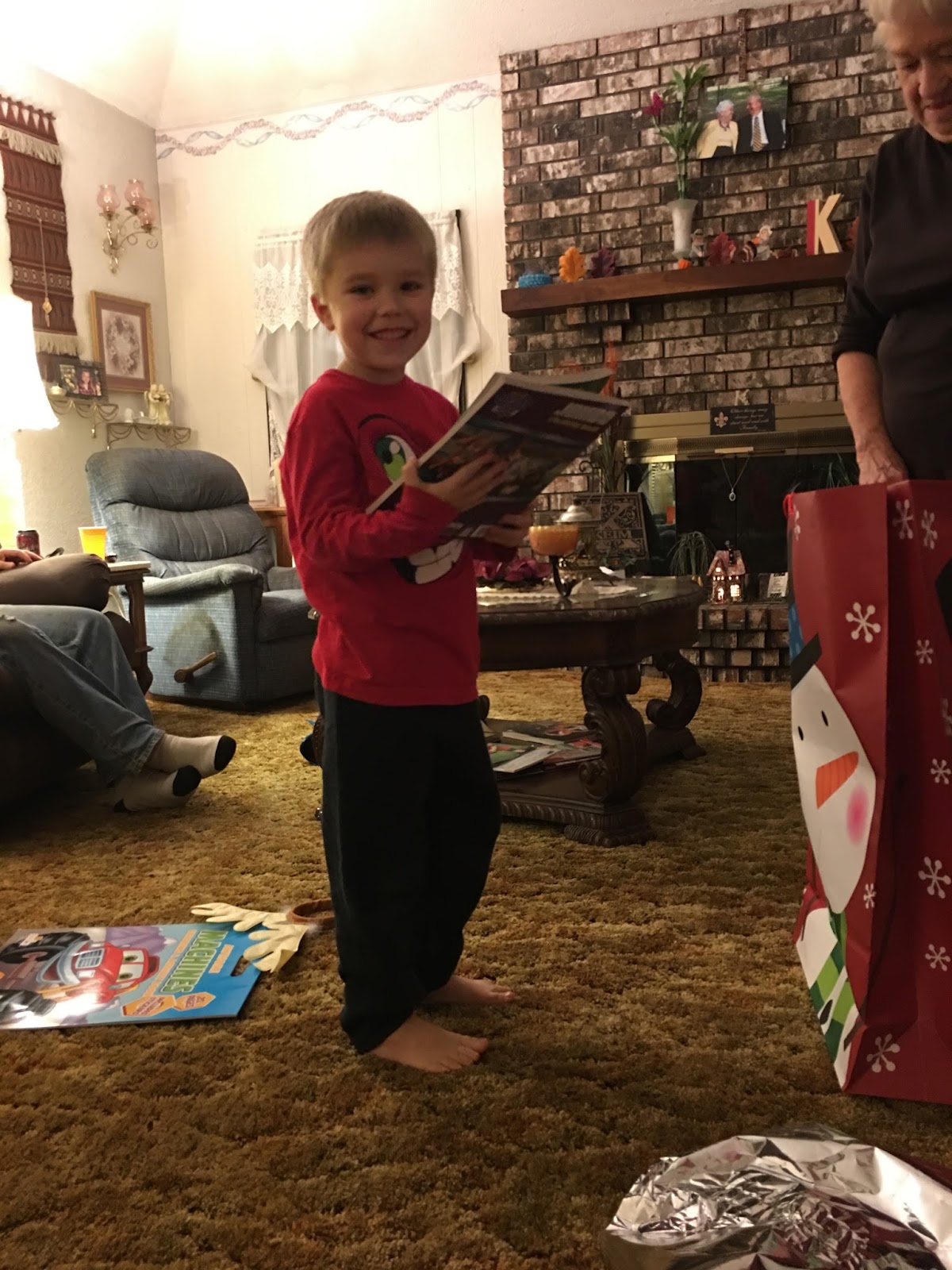 This was our year to have Christmas at Thanksgiving. Grandma likes to do Christmas in waves. So, it lasted several days! This was the beginning. She gave Lance and Lindsey a little baby present as they are expecting in April. So exciting!! Ledger will have a playmate! :-)