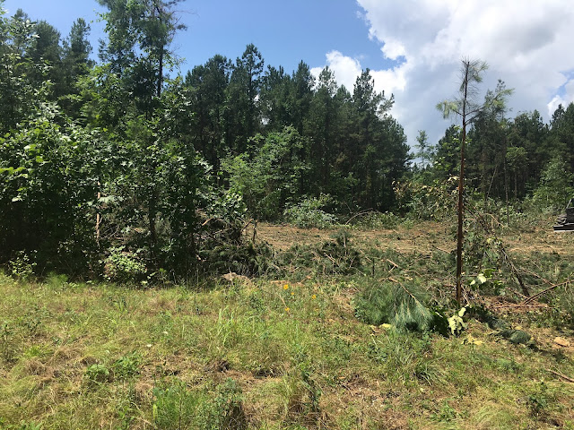 This was about the time we had a little issue with one of our neighbors. The lady called and asked Kris if he would leave a bunch of trees on the side of our property closest to hers. She was worried about her privacy. They had recently bought the house next door and were basically shocked that we were cutting down all the trees. Kris told her that he hated pine trees and that we were going to get rid of them. She was distressed because she thought it was going to affect her property value. She came out the day before and talked to our logger. He told us that he saw her walking up and down the street in front of our property throwing her hands up and down. She was so upset. We tried to be nice about it, but it is our property and we do have plans for it. The logger told her that we wouldn't leave the property like this and that we had big plans for it and would make it look nice. We have since reiterated that to her which has helped some. However, she definitely thinks she can be opinionated about our land for some reason.