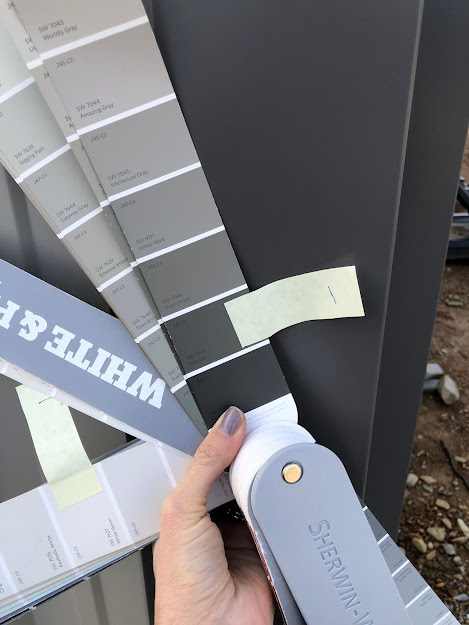 We found this picture and pretty much decided we liked the color of this house and how it looked with the stone. The good thing about it was that it told what the color was--Sherwin Williams Porpoise. We wanted to get Debbie's take on it before making the final decision though. It is always great to have a visual at least it is for me!